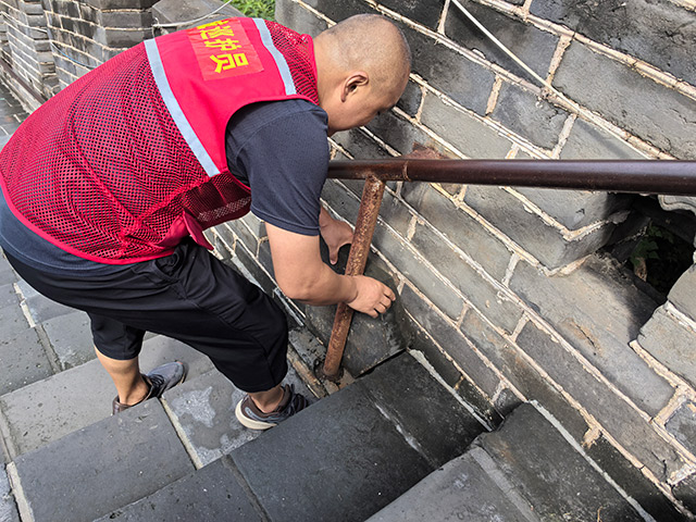 “我父母以前就是文物工作者,父亲负责十三陵景区的园林绿化、母亲负责景区卫生保洁等工作,他们干了30多年,我们两辈人加一起,守护文物50多年了。”张晓璘是“突击队”成员之一,也是遗产“守护者”接班人,提起父母的往事,他格外骄傲。在长城脚下生活了半辈子,张晓璘早已成为一张“活地图”,哪块砖需要修补、哪里有险情,都能娓娓道来。2024年,他发现西线长城有几块异型砖缺失,马上拍照并向上级文物主管部门报告。随后,专业修复人员按照修旧如旧的原则,让缺失的城墙又恢复了往日的神采。