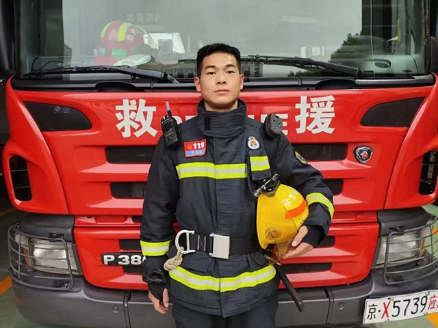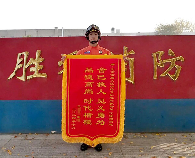 代俊鹏,男,汉族,2003年2月出生,共青团员,顺义区消防支队胜利消防救援站灭火一班战斗员、专职消防员。2024年10月9日,他在休假期间途经G95高速时,发现一起车辆坠渠事故。事故车辆损毁严重、冒烟有燃爆风险,驾驶员重伤被困。代俊鹏毫不犹豫,冒险从车窗钻入车内,徒手将被困者救出,并运用专业急救知识实施先期处置。为争取救援时间,他又不顾双手被划伤,奋力在杂草丛中徒手开辟出一条生命通道,协助医护人员将伤者安全转运。整个过程代俊鹏临危不惧、行动果敢,展现了消防救援人员过硬的专业素养和舍己为人的崇高品格。