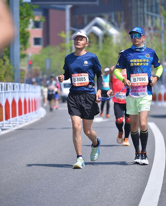 何亚君让宋海峰感知到视障者跑步运动的巨大潜力,刘海军则让他更坚定了助盲跑的决心——刘海军在他和其他志愿者的牵引下完成2021无锡马拉松后,身体健康状况欠佳。但在抽中2022年北京通州“副马”名额时,还想要“再试一次”。