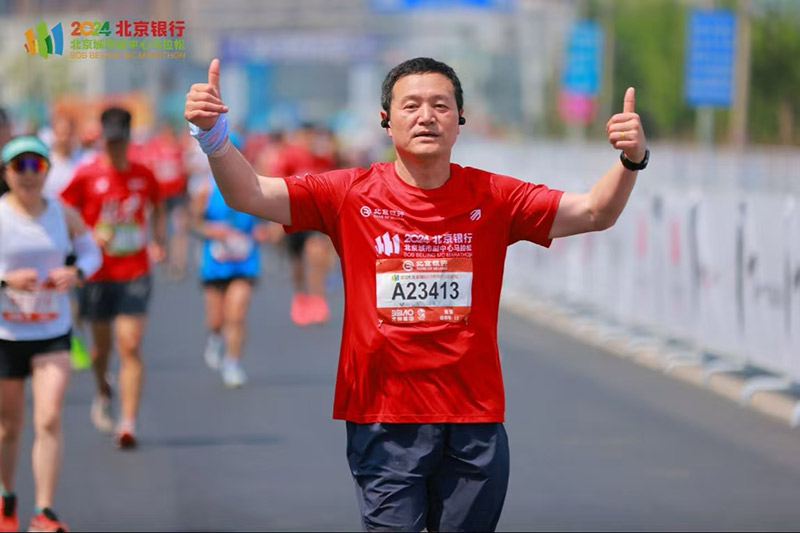 妻子的信念在肖强心中扎根生发,他带动儿子、同事、同学和朋友共同参与无偿献血。他深知热血之力在于众志成城,积极参加无偿献血的宣传工作,号召更多的人加入到无偿献血的队伍,凝聚起守护生命的磅礴力量。为捍卫珍贵的献血资格,年近五十的他毅然向健康发起挑战。曾经在高血压边缘徘徊的他,将晨跑化为信仰,日复一日奔跑在大运河畔,最终成功“逆袭”为马拉松跑者。“跑步真是好,我得为了家人好好跑步,为了我还能献血救人好好跑步。”这朴素的动力,让他将公益理念播撒在每一步奔跑中。