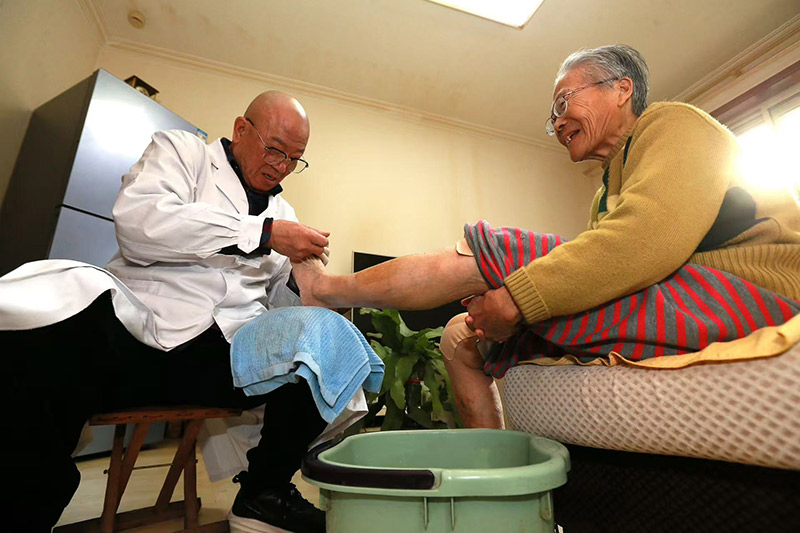 后来,他到社区便民大集的固定摊位上为老人义务修脚。春节、重阳节时,他都会跟随社区志愿服务队到高龄老人家中为他们洗脚、修脚,把爱心送到老人们身边。在社区为老人修脚和按摩这并不是简简单单的只给他们剪指甲,仅解决生理问题,而是在修脚和按摩的过程中,陪老人聊天解闷,让他们能有个开心的晚年生活。在这个过程中,孙庆忠与每一位老人建立了深厚的感情,他认为,能通过自己的手艺,帮助老人们缓解生理上的痛苦,他自己也感到很欣慰。