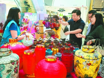 昌平区兴寿镇温馨家园现场义卖残疾人制作的灯笼。京郊日报记者 宋佳音 摄