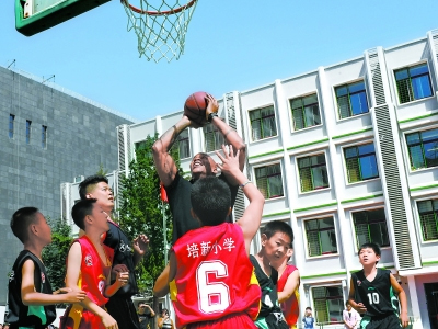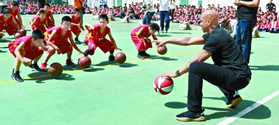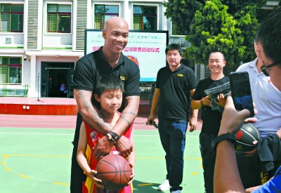 5月22日,马政委来到东城区幸福巷4号,参加“培新小学首届小篮球联赛”开赛仪式,并指导小队员们训练,还和几名小学生打了一场表演赛。“马布里!”“马政委!”师生们高喊球星的名字,培新小学的操场上沸腾了。