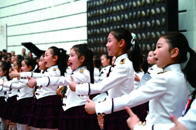 上午九点,国家大剧院橄榄厅铜门如往年一样在歌声中正式开启。过去的十年间,这一环节都是由国家大剧院合唱团的团员完成的,2018年则是由一群孩子用他们的天籁之声开启了这扇艺术大门,也象征着艺术之火承传不熄。