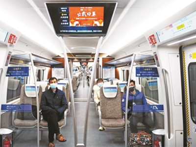2月18日,北青报记者在大兴机场线草桥站乘车时发现,车厢内的挡风板、坐椅等位置设置的“分散落座”等标识十分醒目。据站务部经理韩星玉介绍:“特殊时期,标识是为了引导提醒广大乘客上车后分散而坐,远离而站,给乘客提供一个安全舒适的乘车环境。”