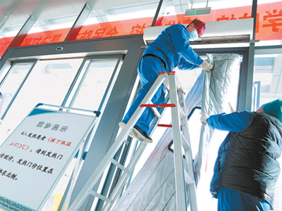 为了减少交叉感染的风险,北京市卫健委近期对全市医疗机构提出了具体要求,包括全市医疗机构要对门诊大厅的门帘进行拆除等措施。图为22日,北京友谊医院通州院区工作人员将院内40余处门帘拆除,排除潜在风险点,防止交叉感染。北京日报记者 方非 摄