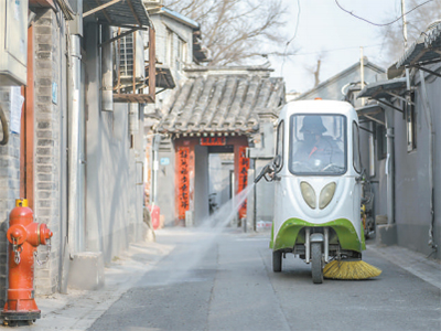 新街口街道首次引入现代化物业,成立了一支应急队和一支防疫消杀小队,分别负责菜站、奶站等配套设施和居民院落的消杀。北京日报记者 潘之望 摄