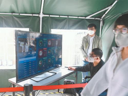 4月18日,西城区在十五中举办新冠肺炎疫情防控应急演练。目前,全区已完成32所学校的红外线测温仪安装工作。4月20日,将组织督查工作组赴各校进行开学条件评估。开学后,西城区将实行小班教学、错峰下课、错峰就餐、错峰上下学。中、高考前两周结束本学期课程,进行居家复习。北京晚报记者 阎彤 摄