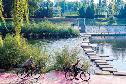 改造后的凉水河丰台段沿岸绿化与慢行系统融合,为市民休闲骑行增添更多样的景观体验。 北京日报记者 邓伟摄