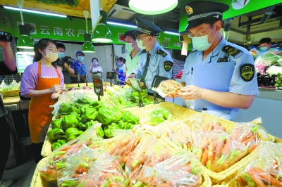 6月17日上午,市场监管部门对农贸市场和餐馆开展综合执法检查。北京日报记者 饶强 摄