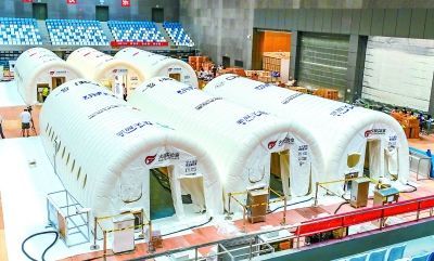 大兴区体育中心内,三组气膜式核酸检测专业实验室于6月22日开始试运行,每天可检测一万多份样本,进一步提升北京市防疫能力。
