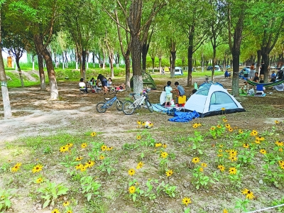 6月27日,端午小长假最后一天,在大运河森林公园露营区,市民在保持安全距离的前提下,支起帐篷,休闲度假。北京日报记者 方非 摄