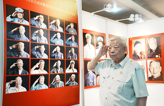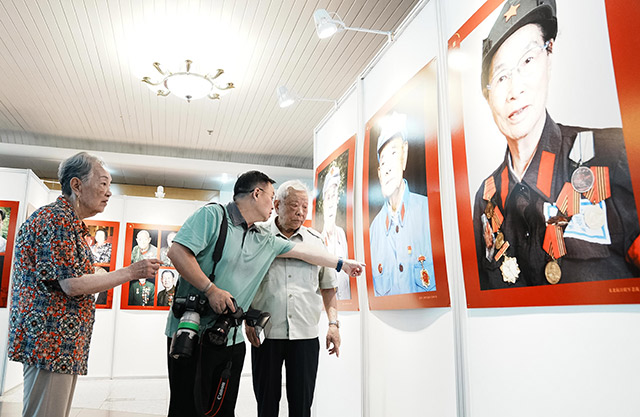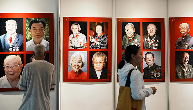 8月7日,为传承和弘扬伟大的抗战精神,抗战老兵记忆肖像作品展在北京市西城区图书馆举行,集中展示了摄影师郭海鹏拍摄的150幅抗战老兵肖像作品。