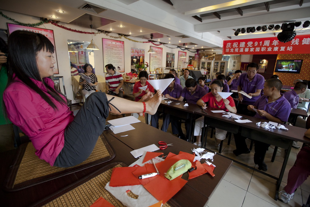 正是这浴火重生的经历,让她内心深处萌生了最朴素的愿望:“自己淋过雨,总想为别人撑把伞。”她决心用自己的力量,为更多残障伙伴点亮希望之灯。2015年,夏虹创办了北京夏虹公益促进中心,将公益梦想付诸更系统、更广泛的组织化行动,并长期担任北京市17所温馨家园的公益特教剪纸老师。她用脚趾夹起剪刀的姿态,成为了5000多名学员心中最美的励志剪影。