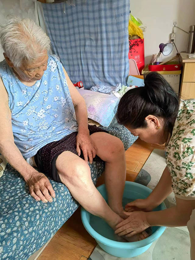 为治好婆婆的严重失眠,白慧霞四处求医,从一位老中医那里学到了足浴按摩的方法。从此,每个夜晚,她都会为婆婆温水泡脚、穴位按摩、肌肉放松……婆婆总心疼地说:“给你添麻烦了。”白慧霞握紧老人枯瘦的手:“您健康长寿,就是我们做儿女最大的福气。”