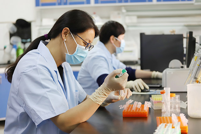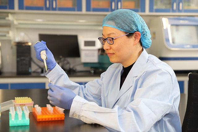 吴桂琴在实验室进行分子检测操作