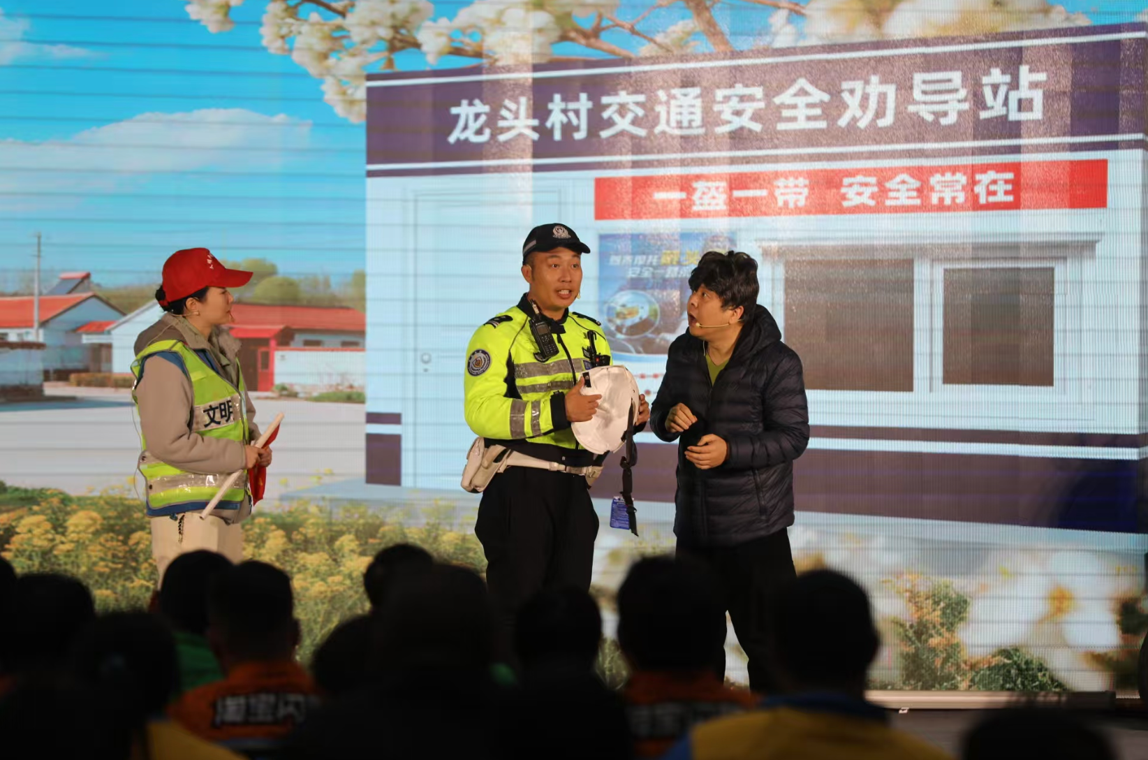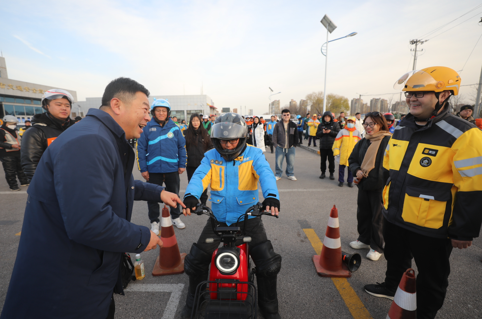 活动尾声,交警、志愿者与骑手代表共同发起文明交通倡议,号召市民与骑手群体争做遵守交规践行者、防范风险示范者、守护平安传播者和文明交通倡导者,携手共建安全有序的交通环境。
