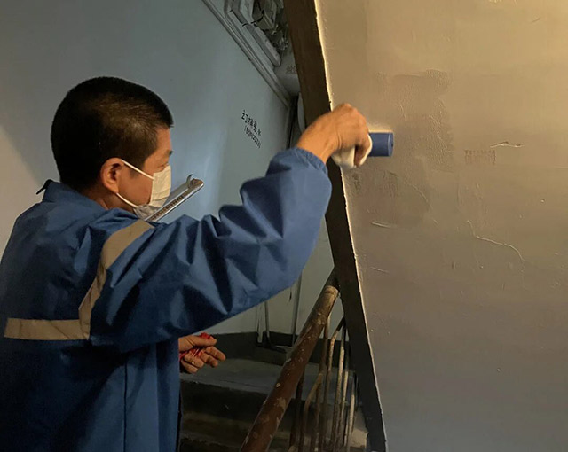 家门口的变化要从中通快递员侯佛传说起。他的快递车座下常备一套特殊的“行头”:自费购买的刮板、抹布和米白色乳胶漆。送件途中,他时刻留意着楼道墙面的“健康状况”,一旦发现小广告或破损痕迹,便利用休息时间,熟练地进行清理、打磨、粉刷。