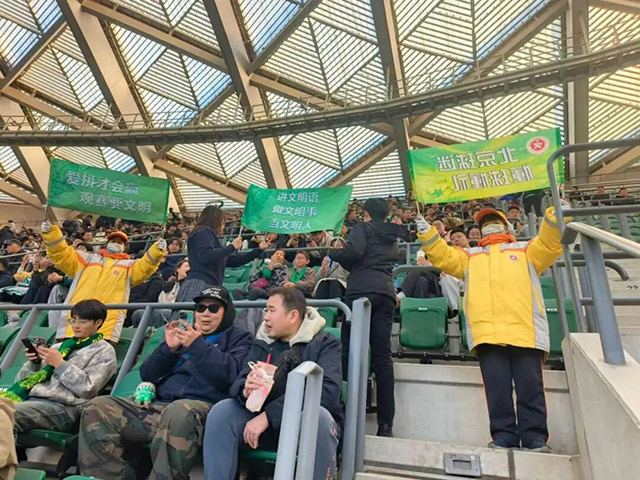 11月22日下午,北京国安队迎来2025赛季中超联赛收官战。400名公共文明引导员再度来到工人体育场,为这场焦点赛事提供文明引导服务。