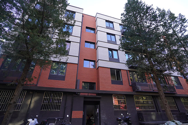 建设于60年代的朝阳区双井街道垂杨柳西里6号楼经过改造穿上“新外套”。北京日报记者程功摄