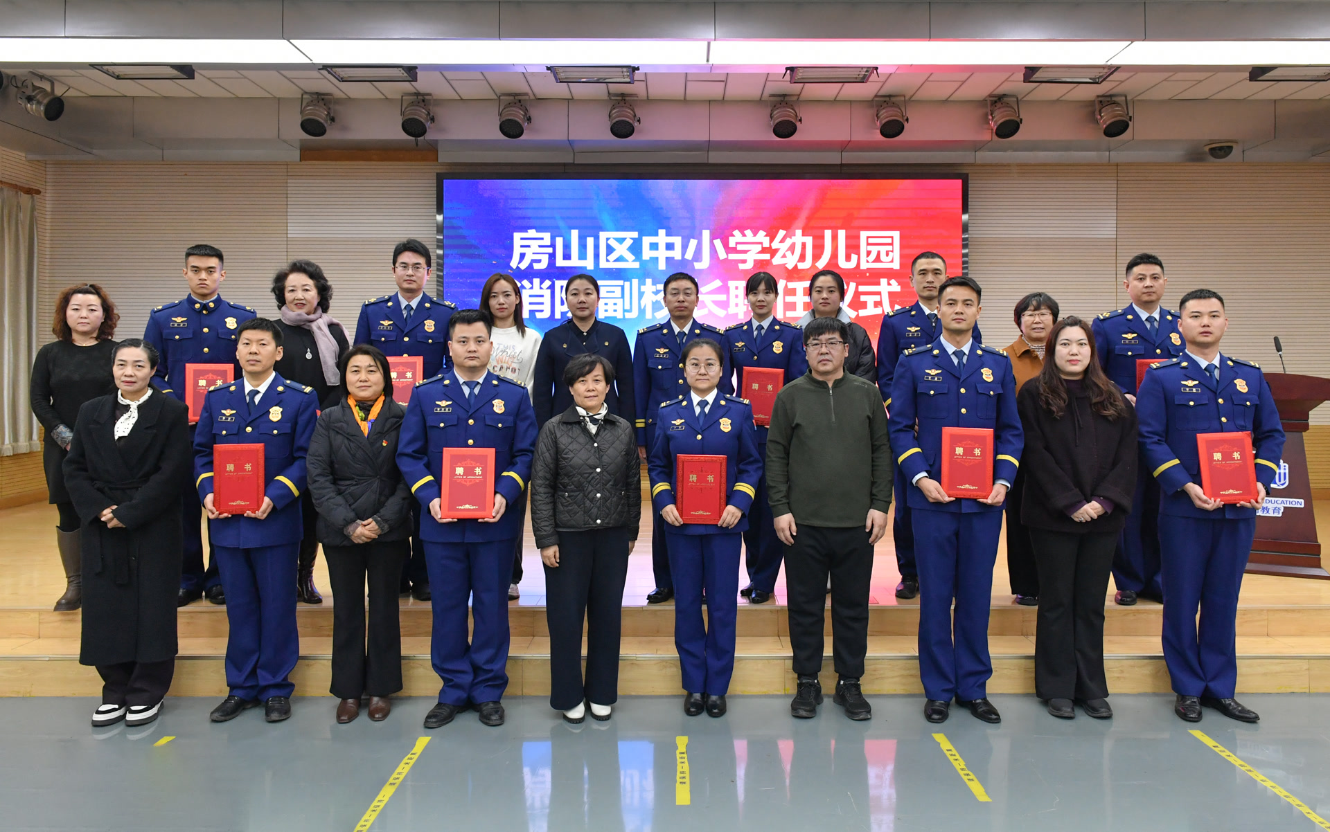 房山区举行中小学幼儿园“消防副校长”聘任仪式。