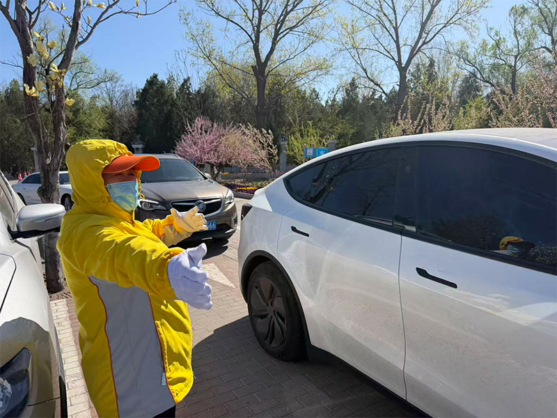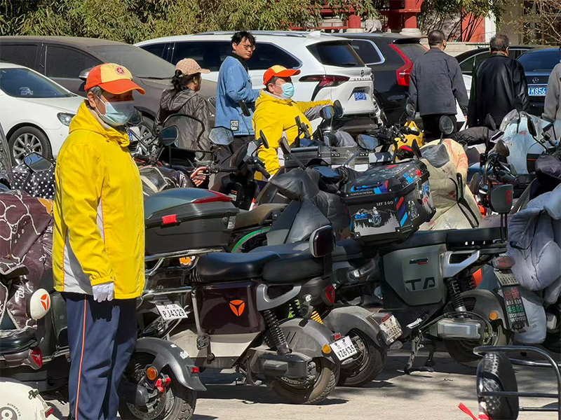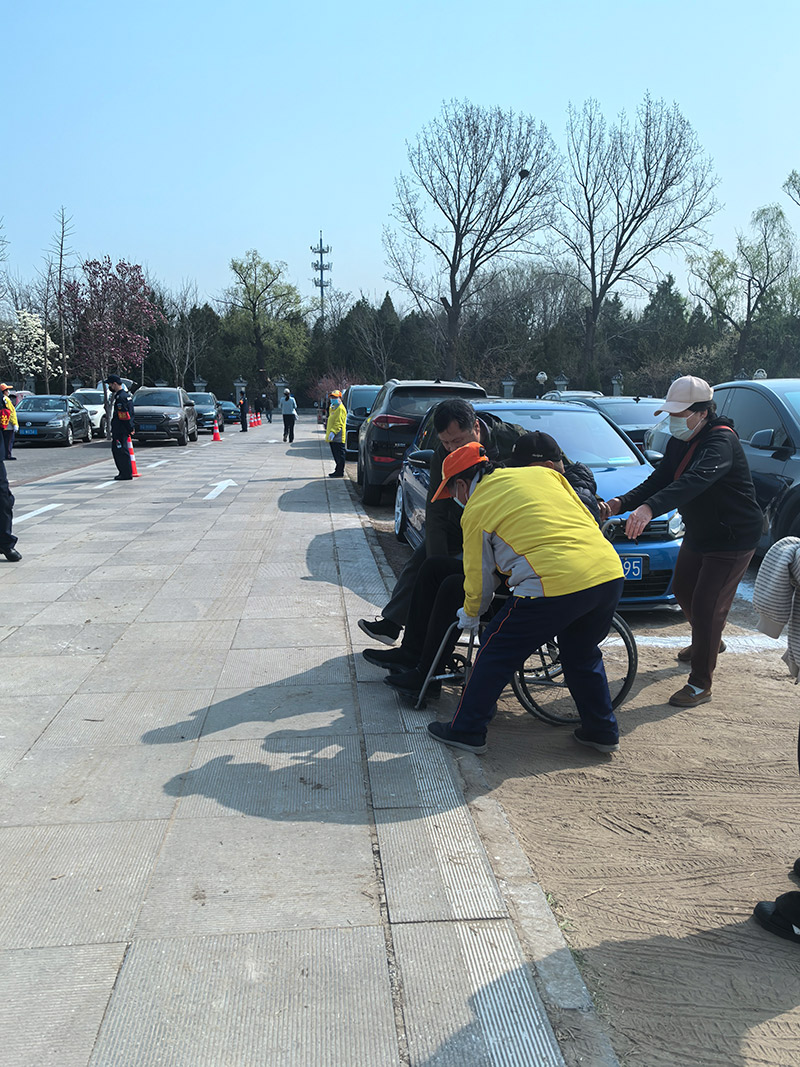 除了指引来往车辆,引导员们还随时关注着市民的需求,提供暖心服务。眼看前方走来一位腿脚不便的老人,有队员第一时间迎了上去,搀着老人一直走进了墓园的大门。一位前来祭扫的市民手里提的袋子突然破裂了,许华赶紧让队员找来一个袋子,帮助这位市民把手里的祭扫物品放了进去。遇到携带纸钱和火种的市民,队员会提醒对方文明祭扫,不能在墓园里烧纸。