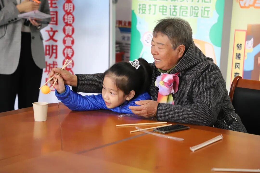 最受群众欢迎的“文明接力”互动游戏将现场气氛推向高潮。这项别出心裁的游戏吸引了全村老少的热情参与,孩子们专注地用筷子夹起乒乓球,小心翼翼地传递给等候的老人;长者们则稳稳接球,再传递给下一位参与者。“这个游戏太有意思了!”孩子们兴奋地说。这场跨越年龄的文明传递,不仅锻炼了孩子们的动手能力,更让文明理念在轻松愉快的互动中代代相传。乒乓球在老少手中流转,文明新风尚也在欢声笑语中浸润人心,展现了泰陵村文明共建的生动景象。