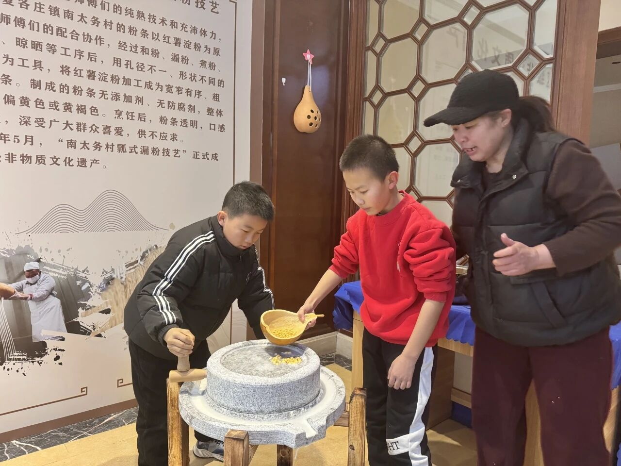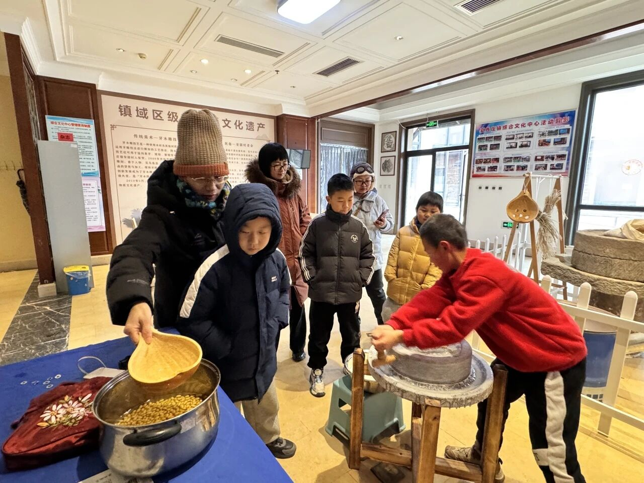 为让更多人感受技艺的魅力和温度,体验者可全程参与从磨浆到点卤的核心环节,现场搭配特制调料。老豆腐鲜香美味,农村花椒大油饼特有嚼劲儿,感受从指尖到舌尖的完整文化体验。