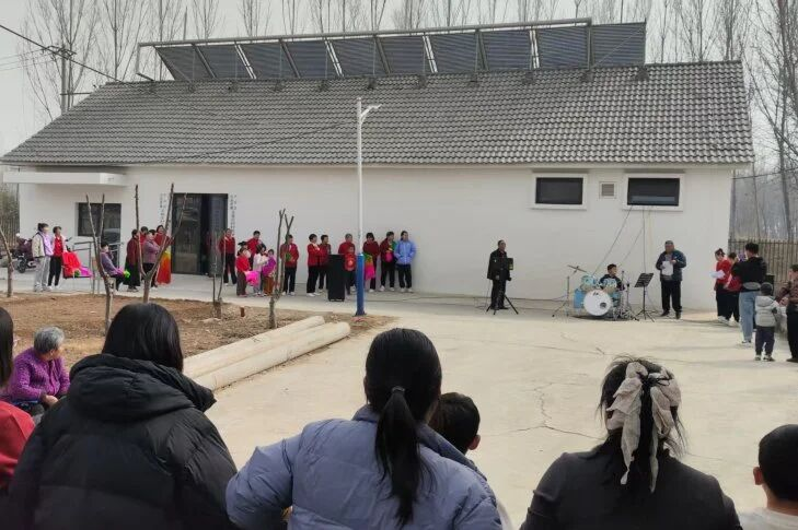 本场演出由本村文艺爱好者自发组建、自主排练,老中青少齐上阵,节目形式多样、精彩纷呈。喜庆热烈的舞蹈《开门红》由大人与儿童共同参与,大手牵小手、舞步齐飞扬,既舞出了新春的红火气象,也展现出家庭和睦、老少同乐的温馨画面,现场气氛热烈十足。《欢乐中国年》欢快灵动,处处洋溢着幸福喜悦;深情悠扬的歌曲《我唱赞歌献祖国》,唱出对祖国的真挚祝福与对美好生活的由衷赞美;经典评剧《小桥送线》韵味十足、唱腔优美,让在场观众重温传统曲艺魅力。
