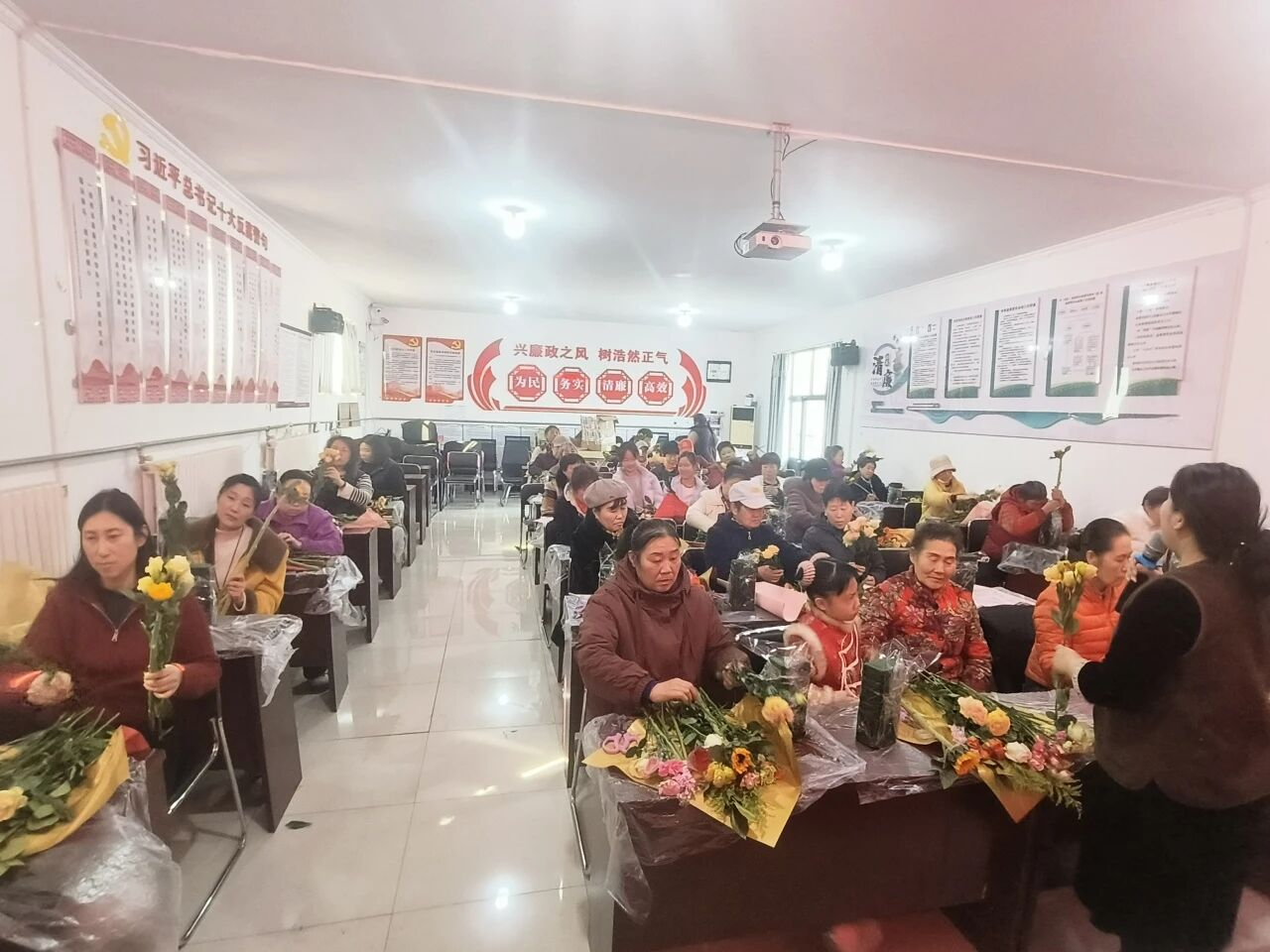 阳春三月,春意盎然。为庆祝妇女节,丰富全村妇女同胞的精神文化生活,东寺渠村新时代文明实践站精心组织开展“花香伴巾帼、幸福满乡村”主题插花活动,以花为媒、以艺怡情,共度温馨美好的节日。