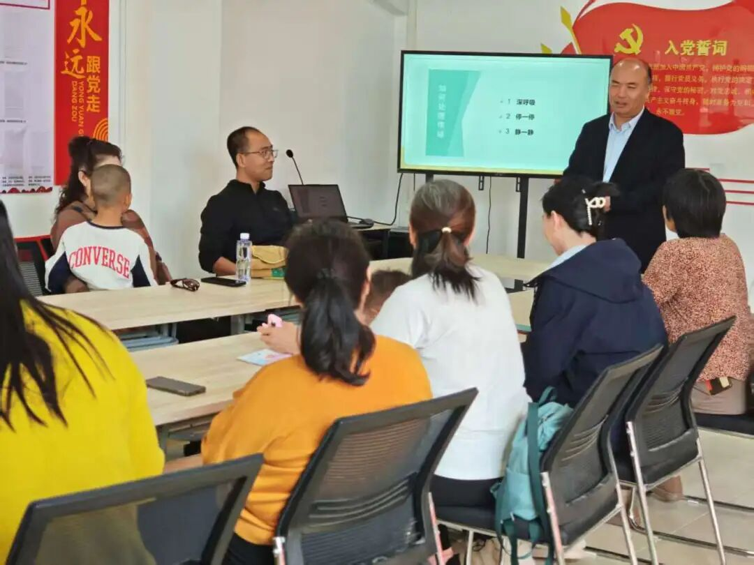 讲座中,岳老师以生动案例和通俗语言,从三大核心维度展开分享。在“如何营造幸福家庭”板块,他提出“陪伴有质量、沟通有温度、氛围有包容”的核心原则,强调家庭成员间的相互尊重与正向互动是幸福家庭的底色;谈及“家庭教育”时,他重点剖析了“榜样示范”的重要性,建议家长摒弃“说教式教育”,通过自身行为引导孩子建立正确价值观,同时关注孩子的个体差异,避免盲目对比;针对“学会情绪管理”,岳老师不仅讲解了家长如何觉察并调控自身情绪,还传授了简单实用的“情绪疏导小技巧”,帮助家长引导孩子正确表达情绪、缓解心理压力。