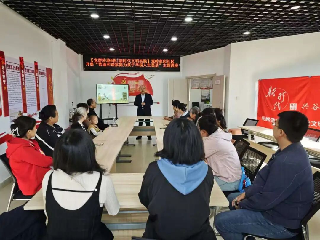 为促进社区家庭文明建设,助力未成年人心理健康成长,9月30日,观岭家园社区组织开展“营造和谐家庭 为孩子幸福人生奠基”主题讲座,活动特邀未成年人心理健康辅导中心岳老师担任主讲,现场互动热烈,反响积极。