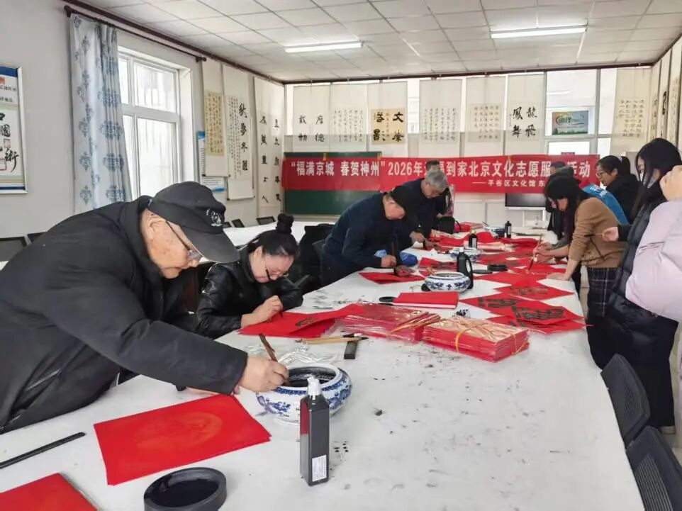 2月6日,平谷区文化馆东高村镇分馆携手镇新时代文明实践所、团委、妇联,开展北京文化志愿服务“送福到家”活动,以笔墨为媒、以祝福为翼,将马年新春的美好期许与传统文化的深厚韵味,精准送达辖区群众心间。