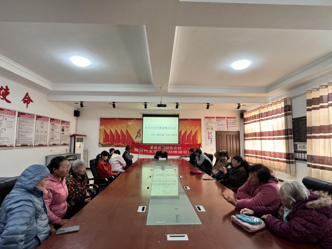 为深入推进乡风文明建设,传承孝老爱亲传统美德,近日,杨各庄村召开道德评议会,聚焦孝老爱亲、家庭和睦、邻里友善等内容,公开评议、民主推选,成功评选出本村“最孝家庭”,以身边榜样带动全村形成崇德向善、孝善传家的良好风气。
