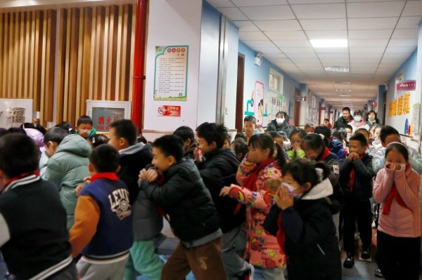 活动伊始,急促的消防警报声划破校园宁静,一场紧张有序的全校消防疏散演习正式启动。听到警报后,国音附小的师生们反应迅速,立刻用湿毛巾捂住口鼻,弯腰低姿前行,紧盯绿色安全指示标识,沿着预设逃生路线快速有序撤离至操场安全区域。整个疏散过程紧张高效,无一人慌乱掉队,充分展现了师生们良好的应急处置能力。