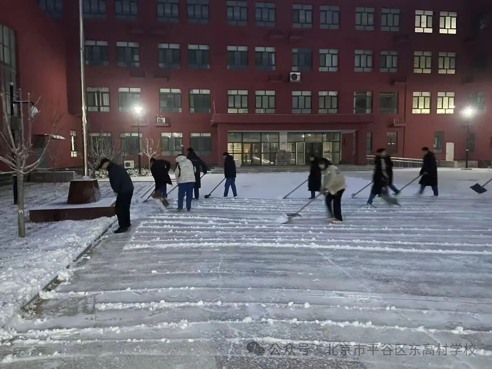 师生齐心协力,教学楼前主干道、停车场、小广场、台阶等重点区域的积雪被清扫干净,为全校师生铺就了一条安全通畅的暖心之路。