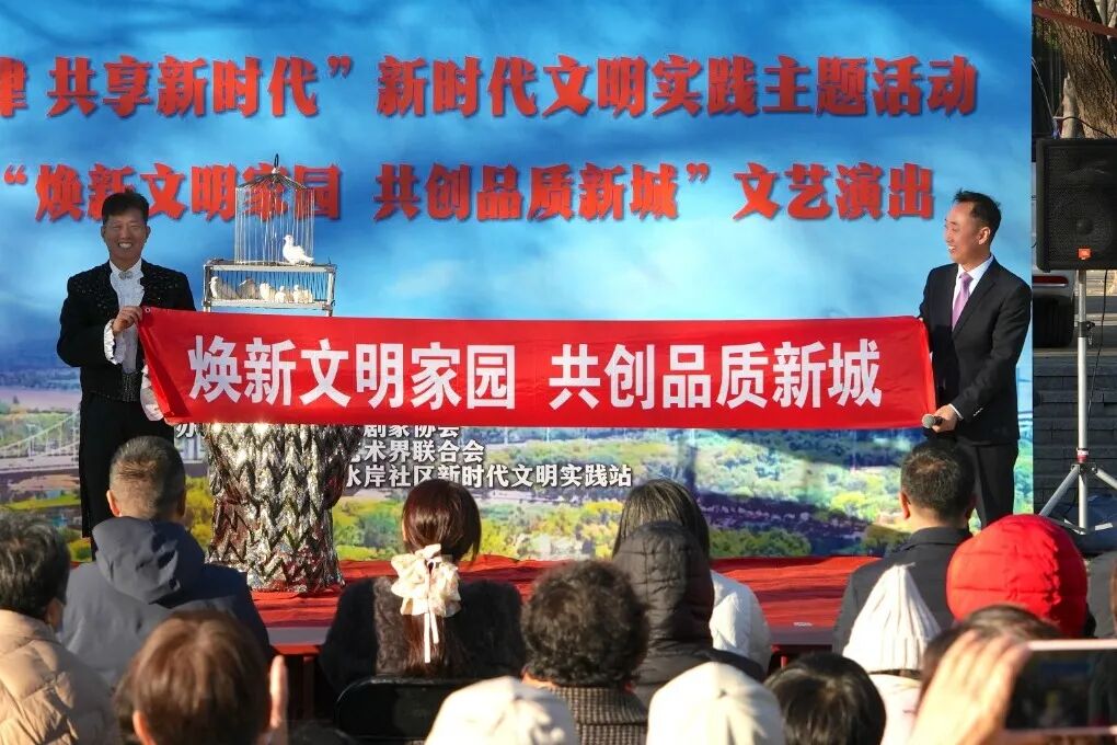 以艺载道,演出喜乐登台,演绎文明担当。小品、魔术、歌曲等接连登场,以艺为媒,弘扬文明新风。快板《我是“典型”》以幽默方式刻画交通出行中的“反面典型”,传递文明交通、规范出行的理念;相声《除藓务尽》生动揭示了随意张贴小广告对城市环境的影响,并赞扬了小广告整治工作取得的积极成效;小品《绝不掉链子》通过演绎邻里协商化解矛盾的情节,展现“邻里和谐互助 共创文明生活”的深刻内涵。