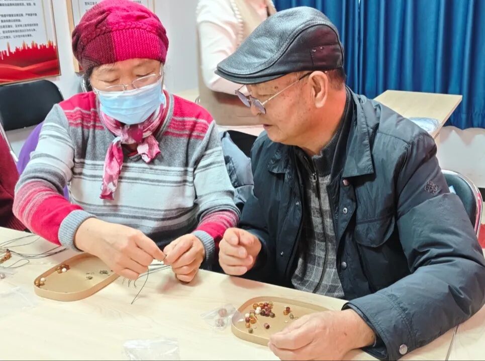 活动现场暖意融融,居民们齐聚一堂,满怀热忱地投入到手作之中。大家仔细挑选一颗颗形态各异的种子,精心搭配、巧手串联,将平凡的种子雕琢成寓意吉祥的手串。这些饱含巧思的手工艺品,既承载着大家对美好生活的热忱与向往,更凝结着传统非遗文化的独特魅力。穿绳打结的互动之间,欢声笑语此起彼伏,居民们在亲身体验中加深了对传统非遗手作的理解与认同。