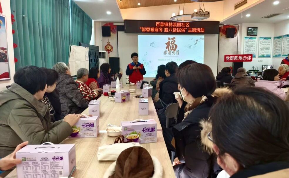 “过了腊八就是年,一碗热粥暖人间。”农历腊月初八,为深入推进文明城区创建工作,丰富群众性文化活动,传承中华优秀传统文化,百善镇林溪园社区依托新时代文明实践站,举办“粥香暖寒冬 腊八话民俗”主题活动,以粥为媒传递温情,以民俗为纽带弘扬文明新风,让冬日社区满溢暖意。