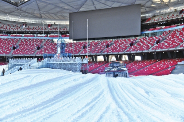 其中,标志性的鸟巢高台滑雪将设在鸟巢室外的热身场内,占地面积2200平方米,可以容纳200人同时滑雪。此外,热身场还设置了雪上飞碟、雪地足球、雪地极限越野、愤怒的雪球等一系列好玩有趣的雪地健身娱乐项目。