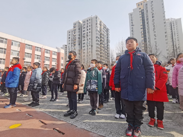“早上好,新学期快乐!”2月26日一早,北京第二外国语学院附属小学的老师们笑着欢迎学生们“回家”,给他们送上礼物——一张绘有卡通“龙宝宝”的红色许愿卡。