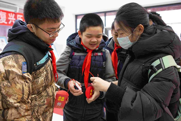 “我们平时就对于盲盒特别感兴趣,把这些‘红包’盲盒都拿完之后,还能看到展板上‘我在八十很想你’的字样,感到很惊喜,也对新学期充满了期待。”北京市第八十中学学生李子恒说。