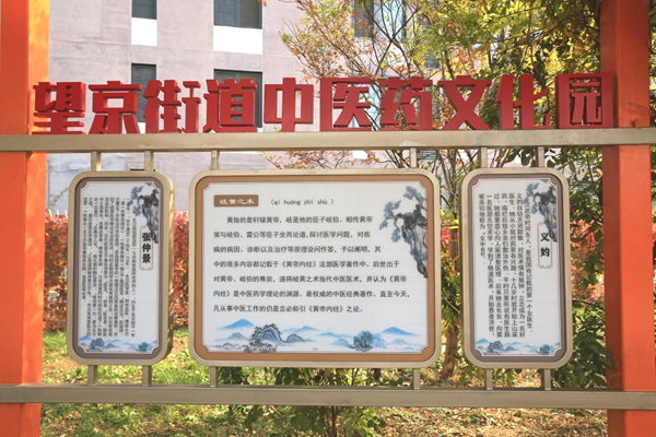近日,朝阳区望京街道花家地街与阜通东大街交叉路口东侧、西侧的绿化三角地变身为中医药文化园,打造辖区中医药文化弘扬、传承和传播的主阵地,为辖区居民提供了解中医药文化、学习中医药知识的平台。