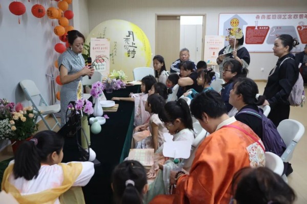 爱国教育区则以“寓教于乐”的形式传递家国情怀。“好时节拼拼乐”游戏将国庆元素、家国故事融入拼图碎片,孩子们在寻找、拼接的过程中,逐步了解国庆节的历史意义与时代内涵,国家认同感与民族自豪感在互动中自然升华;汉服体验区与赏月区则构建了传统文化与现代生活的交融场景——各式精美汉服整齐陈列,居民可自由挑选试穿,孩童身着汉服的天真烂漫、成人穿戴后的温婉典雅,都成为现场亮眼风景,大家纷纷拍照定格美好;赏月区伴着皎洁月色,居民围坐畅谈,邻里间的温情在静谧氛围中不断升温。