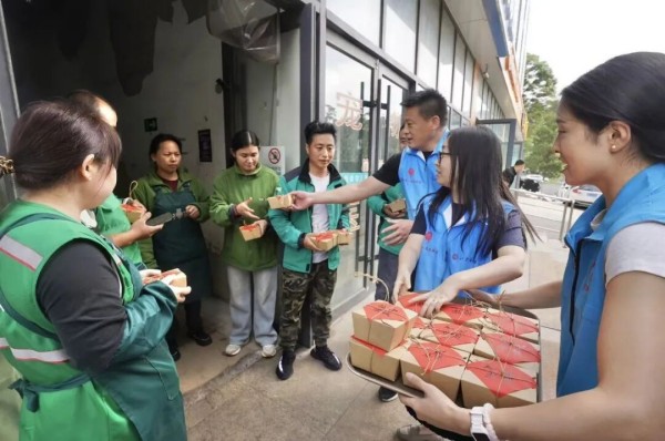 活动尾声,安贞街道工作人员带着刚出炉、尚有余温的爱心月饼,分别前往辖区内的快递站点、外卖配送集中点。在这些新就业群体日常忙碌的地方,工作人员亲手将饱含关怀的月饼礼盒送到仍在坚守岗位或短暂休息的送餐员、快递员手中,向他们道一声“中秋快乐”,感谢他们为社区运转所付出的辛勤努力。收到月饼的新就业群体代表们脸上满是笑容,纷纷表示这份节日礼物既暖心又实在,让他们在异乡也感受到了家的温暖。