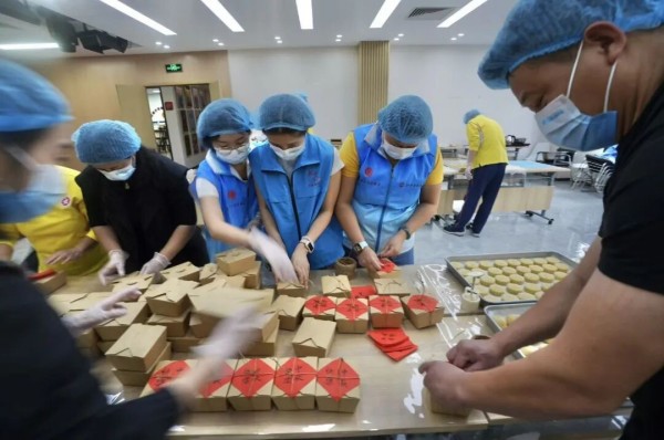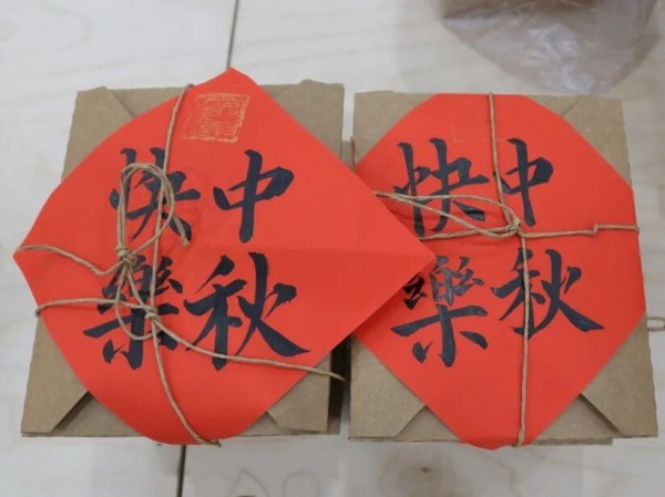 经过精心烤制,香气四溢的月饼新鲜出炉。待月饼稍稍冷却后,工作人员与参与者一同将其打包装入特制礼盒,每一盒月饼中还贴心附上了一张手写的“中秋快乐”卡片,字里行间满是真挚的祝福。