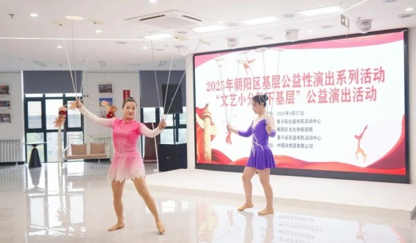 9月27日,麦子店街道市民活动中心内热闹非凡,“月满中秋京彩炫技”杂技艺术专场演出在此精彩上演。作为2025年朝阳区基层公益性演出系列活动之“文艺小分队下基层”的重要环节,中国杂技团有限公司带来的节目让现场观众直呼过瘾。猴戏《大圣归来》中,“美猴王”腾跃翻扑间,金箍棒在手中流转成银弧,时而点地腾身展现灵动身姿,时而架棒亮相尽显威风,引得台下外国友人连连惊叹;川剧变脸表演更将气氛推向高潮,表演者身着精致戏服,手挥扇挡间,红脸转瞬变黑脸,奇妙的变脸技艺让外国观众纷纷起身鼓掌。此外,指尖翻飞间稳稳转动的花盘、白鸽腾空瞬间全场屏息的魔术《放飞和平鸽》,轮番登场的精彩节目让欢呼声、欢笑声此起彼伏。