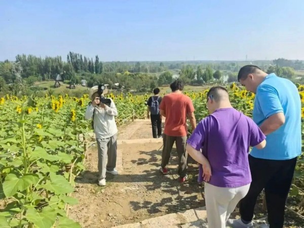 为了让这份美好时刻永久留存,活动现场还安排了拍照环节。志愿者们主动上前,用镜头捕捉残疾人朋友们的幸福瞬间:有人对着镜头比出胜利手势,活力满满;有人轻轻抚摸向日葵花瓣,满是温柔;还有人闭上双眼深呼吸,享受着自然的馈赠。每一次快门按下,不仅定格了秋日的浪漫,更记录下残疾人朋友们自信绽放的模样。