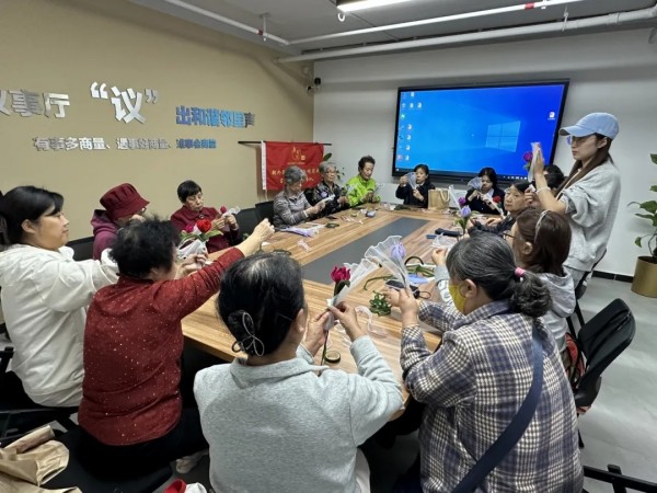活动中,专业手工老师从最基础的花瓣卷曲技巧,到整体的花型组合,再到最后的花茎装饰与定型都进行了耐心细致的分步讲解与演示。不少居民起初担心自己“手不巧”,但在老师的鼓励和协助下,很快就掌握了制作要领。大家互相交流制作心得,比较彼此的作品,现场充满了欢声笑语,邻里之情在指尖的忙碌中悄然升温。