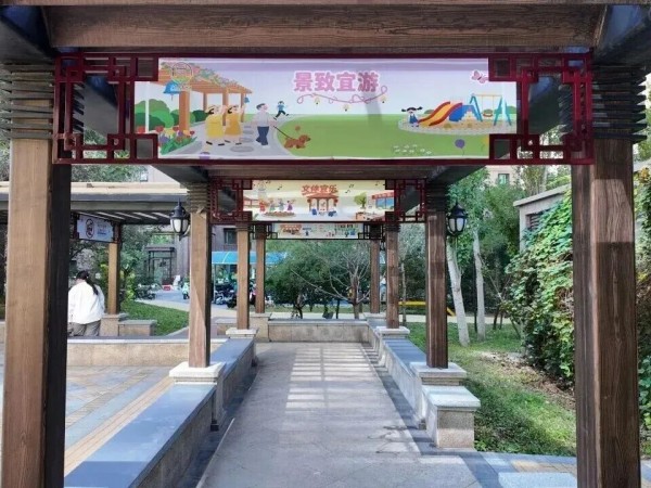 南磨房地区广泰华亭社区则通过改造文化长廊,实现了便民服务与文化滋养的双重提升。此前,3、5号楼中央长廊因缺少顶棚和年久失修,给居民带来“晴天晒、雨天淋”的不便。社区党支部迅速响应居民需求,启动“华亭心语——我们的舞台”项目,为长廊加装遮阳挡雨顶棚,并配备软胶座椅,同时修复了破损墙面。长廊内还装饰了“五宜”和“非遗”文化展板,经过居民投票,该长廊被正式命名为“华采亭韵”。